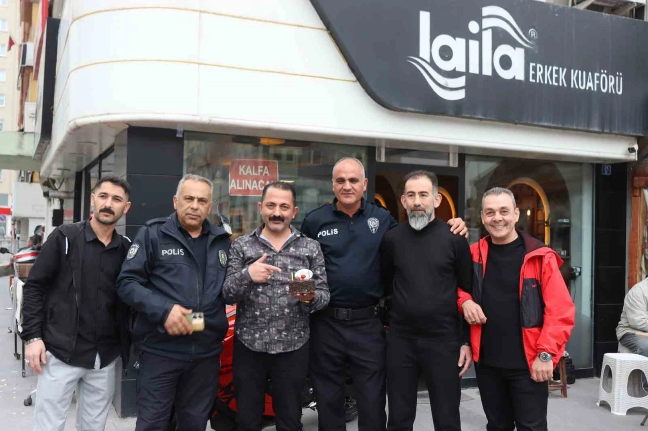 Kocasinan ilçesine bağlı Sahabiye Mahallesi Ahmetpaşa Caddesi üzerinde faaliyet gören esnaf, Türk Polis Teşkilatı’nın 180’inci yıldönümü ve Polis Haftası dolayısıyla ekiplere sürpriz yapmak istedi. Esnaf aralarında kavga ediyor gibi yaparak polis ekiplerine ihbarda bulundu. Ardından olay yerine kısa sürede gelen ekipler, kavga eden esnafı ayırmak için araçlarından indiği sırada konfeti patlatılarak pasta getirildiğini görünce hem şaşırdı hem de duygulandı. Esnaf tarafından haftaları kutlanan ekipler, kendilerini duygulandırdıkları için esnafa teşekkür etti.