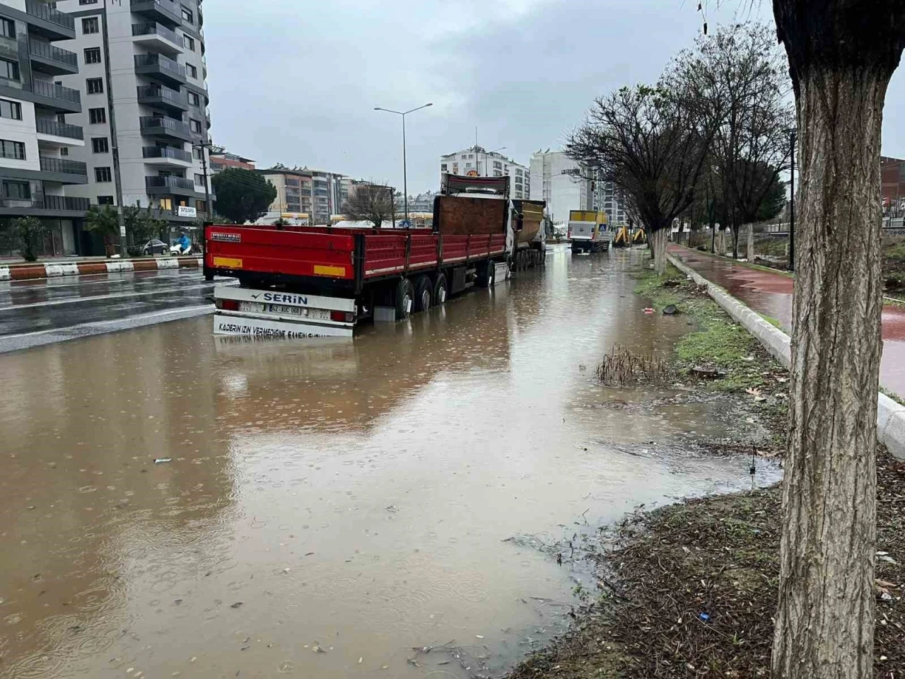 Aydın’da gece saatlerinden itibaren etkili olan kuvvetli sağanak yağış İncirliova ilçesinde karayolunu göle çevirdi. Meteoroloji Genel Müdürlüğü tarafından Aydın için turuncu kod uyarısı yapıldı. Gece saatlerinde kuvvetli gök gürültülü sağanak yağış Aydın’da etkili oldu. Yağışın devam ettiği Aydın’da kuvvetli sağanak yağış sonrası cadde ve sokaklar göle döndü. İncirliova ilçesinin girişinde Aydın-İzmir karayolunu yağmur suları kapladı. Aşırı yağış nedeniyle dolan kanallar karayolunu göle çevirdi. Karayolları ekipleri, yoldaki biriken yağmur sularının tıkadığı giderleri açmak için çalışma yaptı.