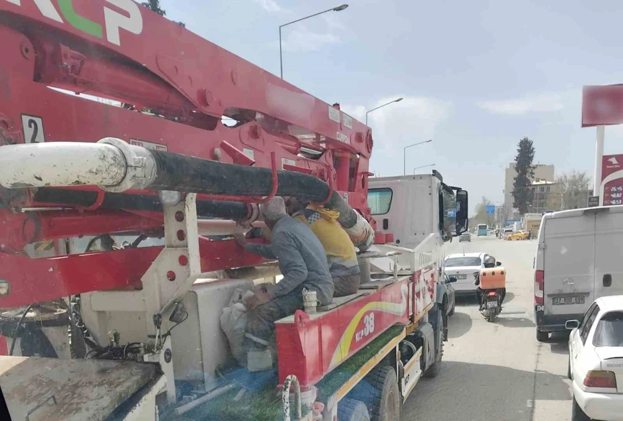 Adıyaman’da, işçilerin beton pompası üzerindeki tehlikeli yolculuğu tepkilere neden oldu.