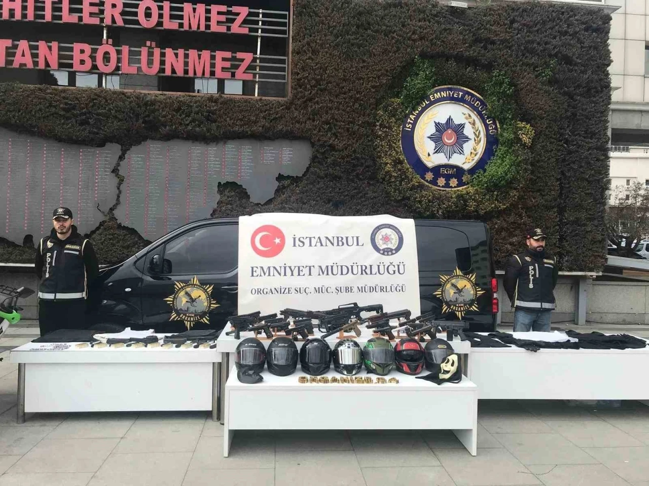 Daha önce karıştıkları eylemlerde beraber hareket eden ancak yaşadıkları grup içi anlaşmazlıklar yüzünden ayrılarak husumet yaşayan çıkar amaçlı suç çetelerine yönelik operasyonlarda ele geçirilen silahlar ve kaçarken kullandıkları motosikletler emniyette sergilendi. 17 farklı eyleme karışan, aralarında çete elebaşı Barış Boyun’un 2 avukatının da yer aldığı 42 şüpheli gözaltına alınmıştı.