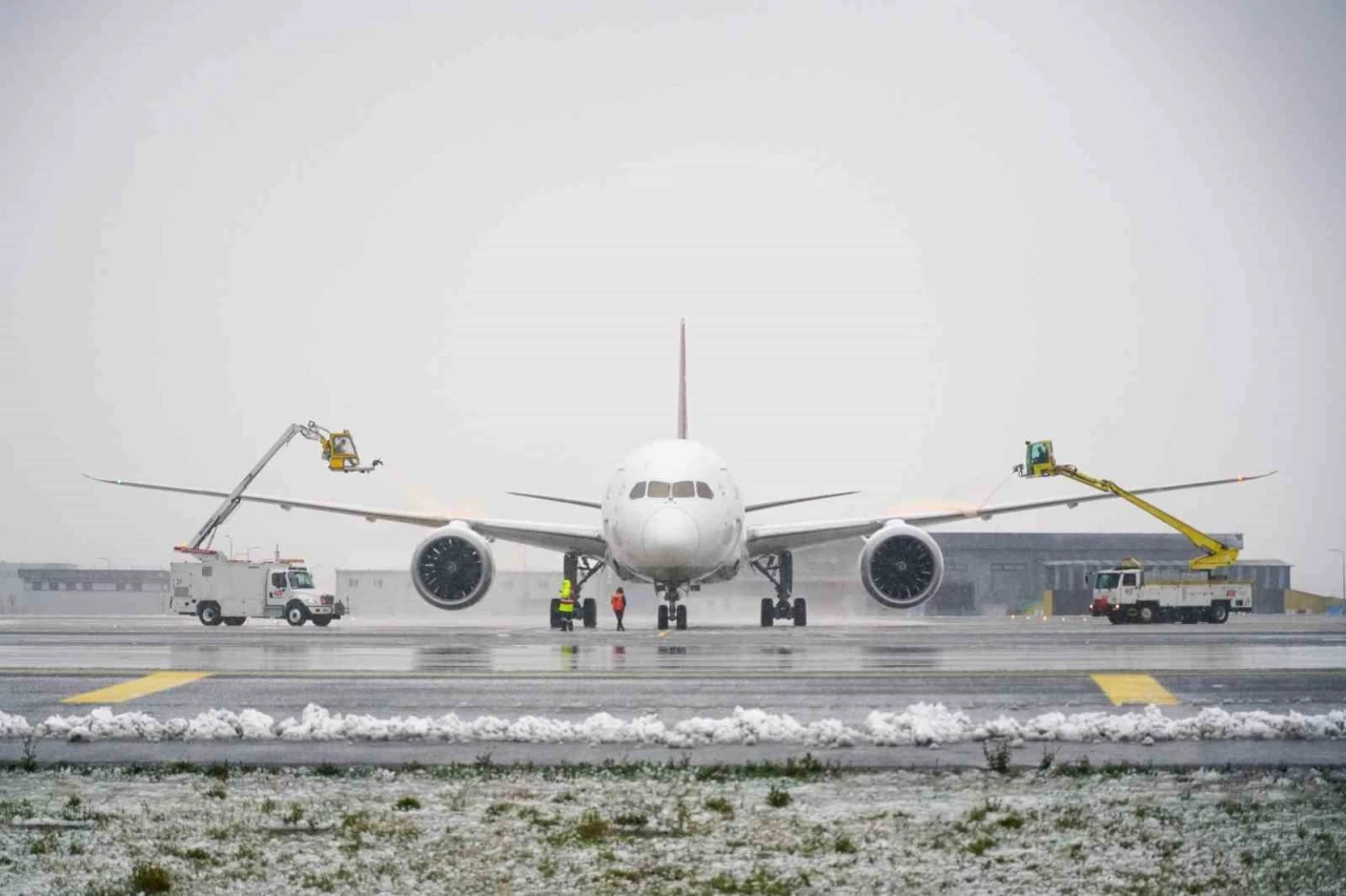 İGA İstanbul Havalimanı’nda uçaklar "de-icing" ve "anti-icing" adı verilen buz çözücü özel sıvılarla yıkanıyor. Havalimanında seferlerde herhangi bir aksama yaşanmıyor.
