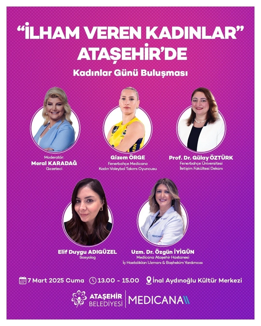 Ataşehir Belediyesi ve Medicana Sağlık Grubu, 8 Mart Dünya Emekçi Kadınlar Günü dolayısıyla özel ve anlamlı bir etkinliğe imza atacaklar. Kadınların gücüne ve toplumsal katkılarına vurgu yapmak amacıyla 7 Mart Cuma günü gerçekleştirilecek olan "İlham Veren Kadınlar" etkinliği, özel konuşmacılar ve katılımcıları bir araya getirecek.