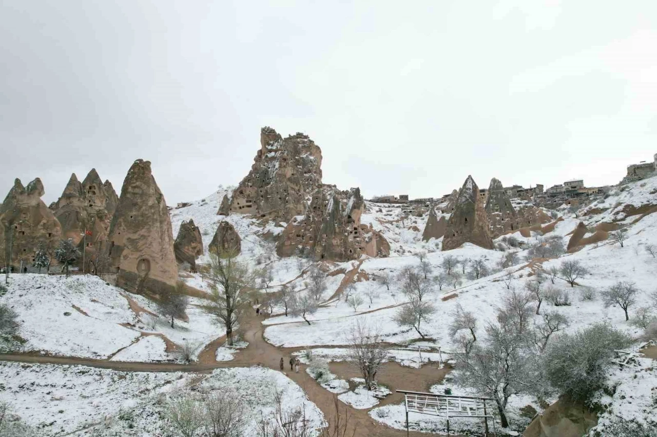 UNESCO Dünya Doğal ve Kültürel miras listesinde yer alan ve yılda yaklaşık 4 milyondan fazla yerli ve yabancı turist ağırlayan Kapadokya bölgesi gece saatlerinde başlayan kar yağışı ile birlikte beyaza büründü.