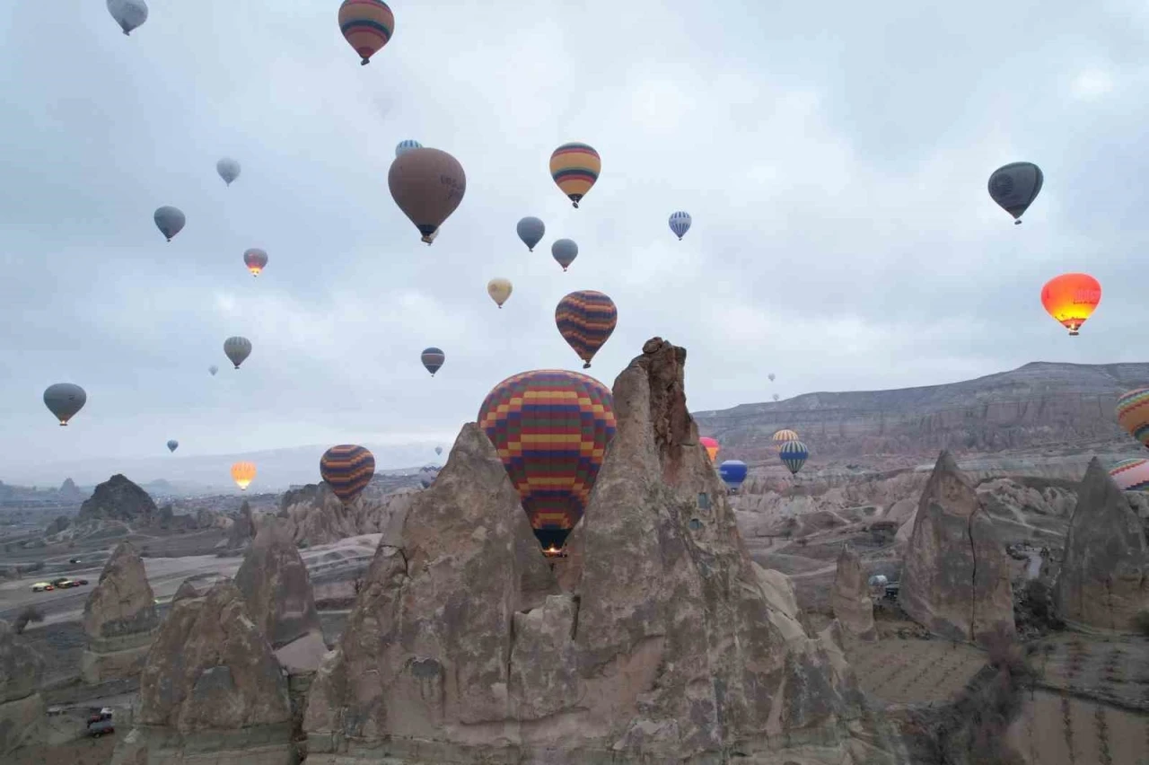 Olumsuz hava şartları nedeniyle 2024 yılının son iki gününde havalanmayan sıcak hava balonları, 2025 yılının ilk saatlerinde tekrar gökyüzü ile buluştu. Tarihi ve kültürel dokusuyla her yıl milyonlarca turist ağırlayan Kapadokya bölgesinde bu yılbaşında da doluluk oranı yüzde 100’ü buldu. Yeni yıla Kapadokya’da giren yerli ve yabancı turistler, sıcak hava balonları ile Kapadokya’yı gökyüzünden izleme imkânı buldu. Sabahın erken saatlerinde Göreme beldesinden havalanan ve 1 saat boyunca havada kalan sıcak hava balonları, peribacaları ve eşsiz vadilerin üzerinde süzülerek turistlere gökyüzünde güneşin doğuşunu seyretme imkanı sağladı.