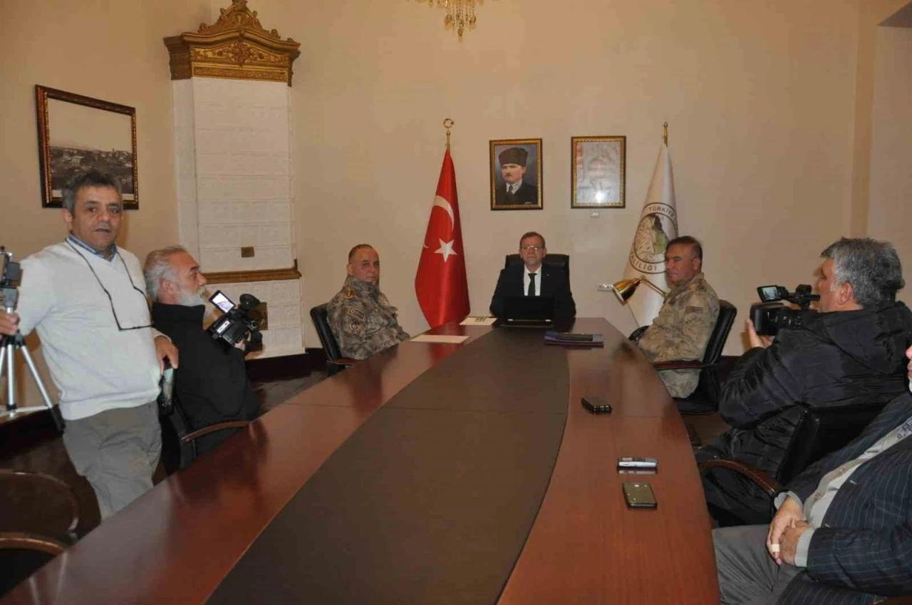 Valilik Toplantı Salonu’nda düzenlenen toplantıya, İl Emniyet Müdürü Mehmet Ömür Saka, İl Jandarma Komutanı Kıdemli Albay Yusuf Mutlu Genç, ulusal ve yerel basının temsilcileri katıldı.