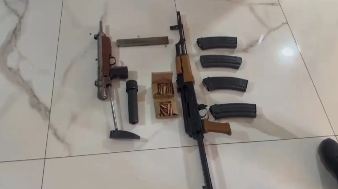 KOM ekiplerince yapılan aramada ofisin banyo ve tuvalet kısmının asma tavandan 1 AK-47 Kalaşnikof marka uzun namlulu silah, 1 Thompson marka uzun namlulu silah, 1 Susturucu, 5 uzun namlu şarjörü ve 119 adet uzun namlu fişeği çıktı.