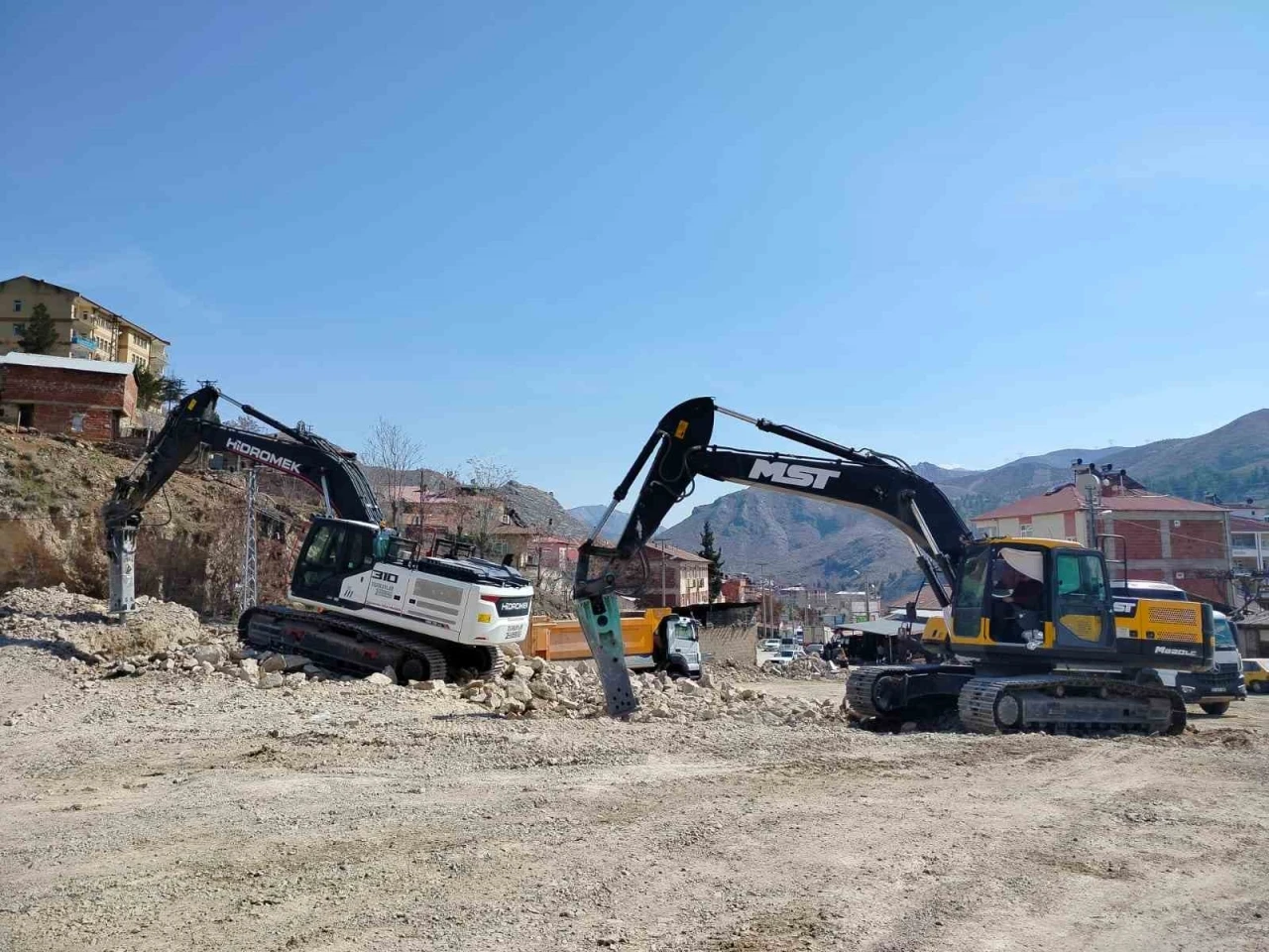 Keban’da meteoroloji istasyonu ve lojmanın bulunduğu alan daha önce yıkılmıştı. Molozların bırakıldığı bölgede belediye ekipleri tarafından çalışma başlatıldı. İnşaat atıkları, iş makineleri yardımı ile kamyonlara alınarak ilçe dışına çıkarıldı.
