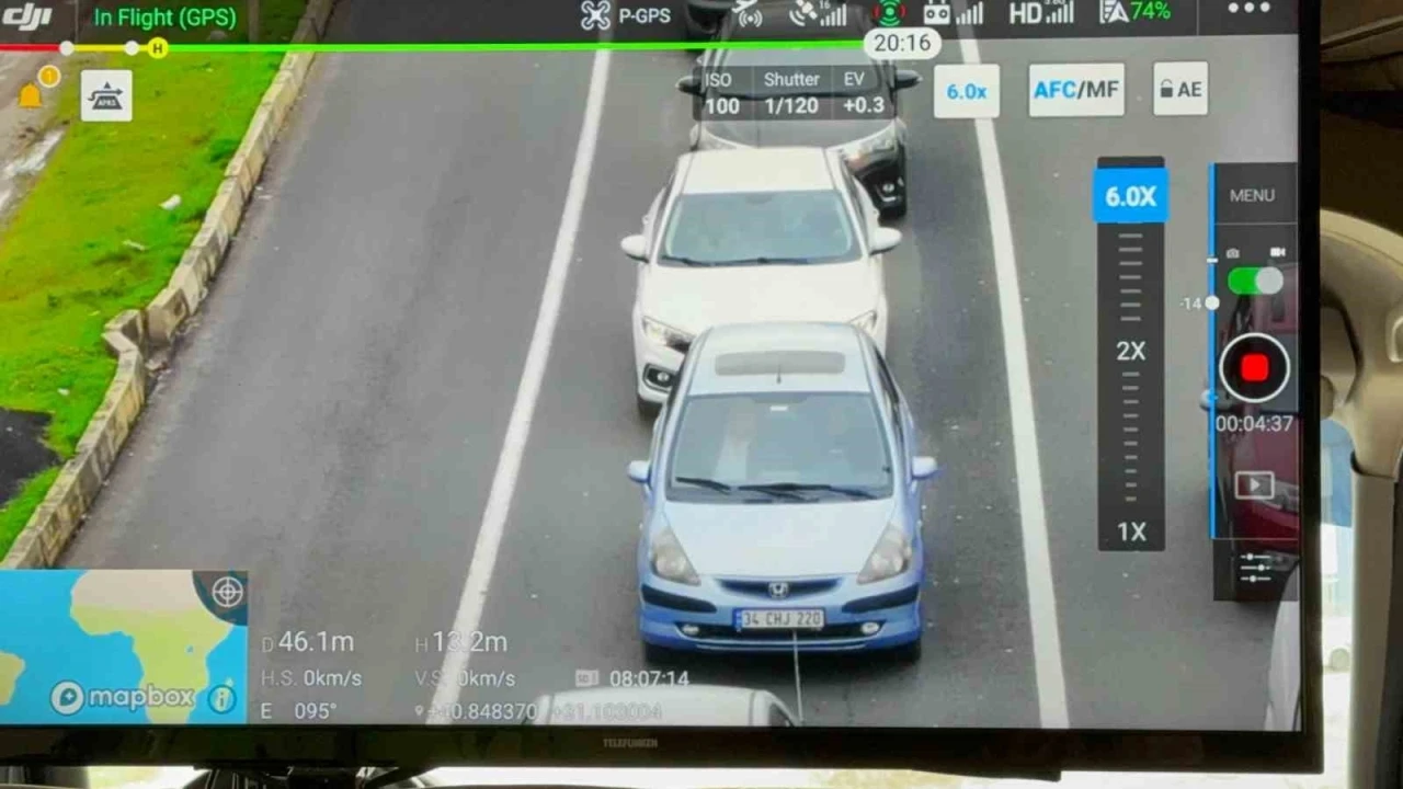 Kemer takmayan, telefonla konuşan sürücüler dronla görüntülendi