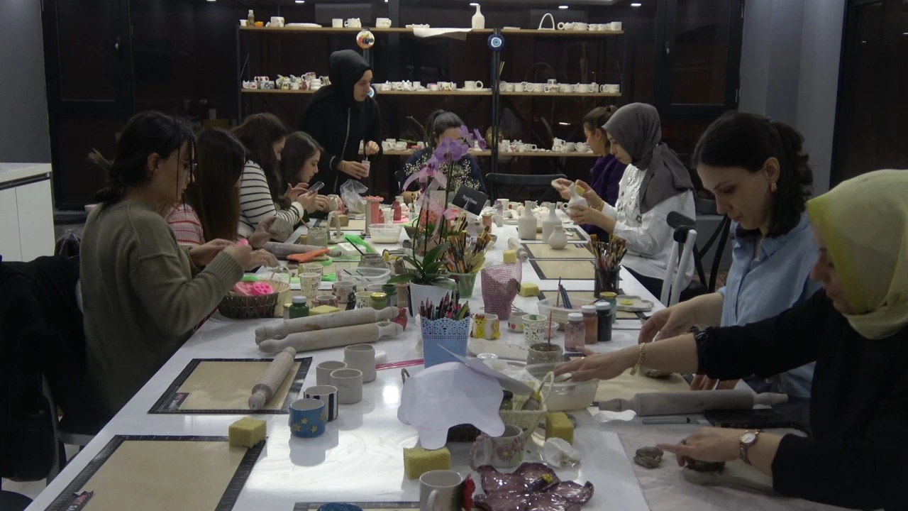 Kilis’te kadınların hem sanatsal üretim yaparak kendilerini ifade ettiği hem de günlük hayatın stresinden uzaklaştığı seramik atölyesi, yoğun ilgi görüyor.