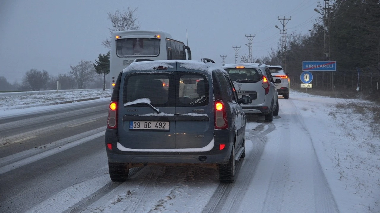 Kırklareli’nde etkisini artıran kar yağışıyla beraber bazı bölgelerde trafik durma noktasına geldi.