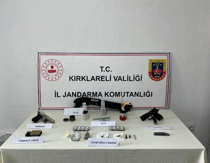 Operasyonda yapılan aramalarda bir miktar uyuşturucu, 2 ruhsatsız tabanca ile tüfek geçirildi.