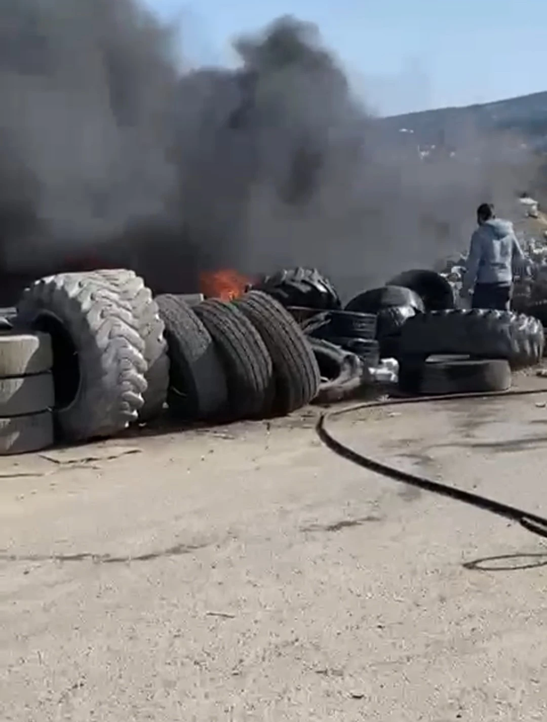 Kütahya’daki Fatih Sanayi Sitesi’nde hurda lastiklerin tutuşmasıyla çıkan yangın, itfaiye ekiplerince söndürüldü.