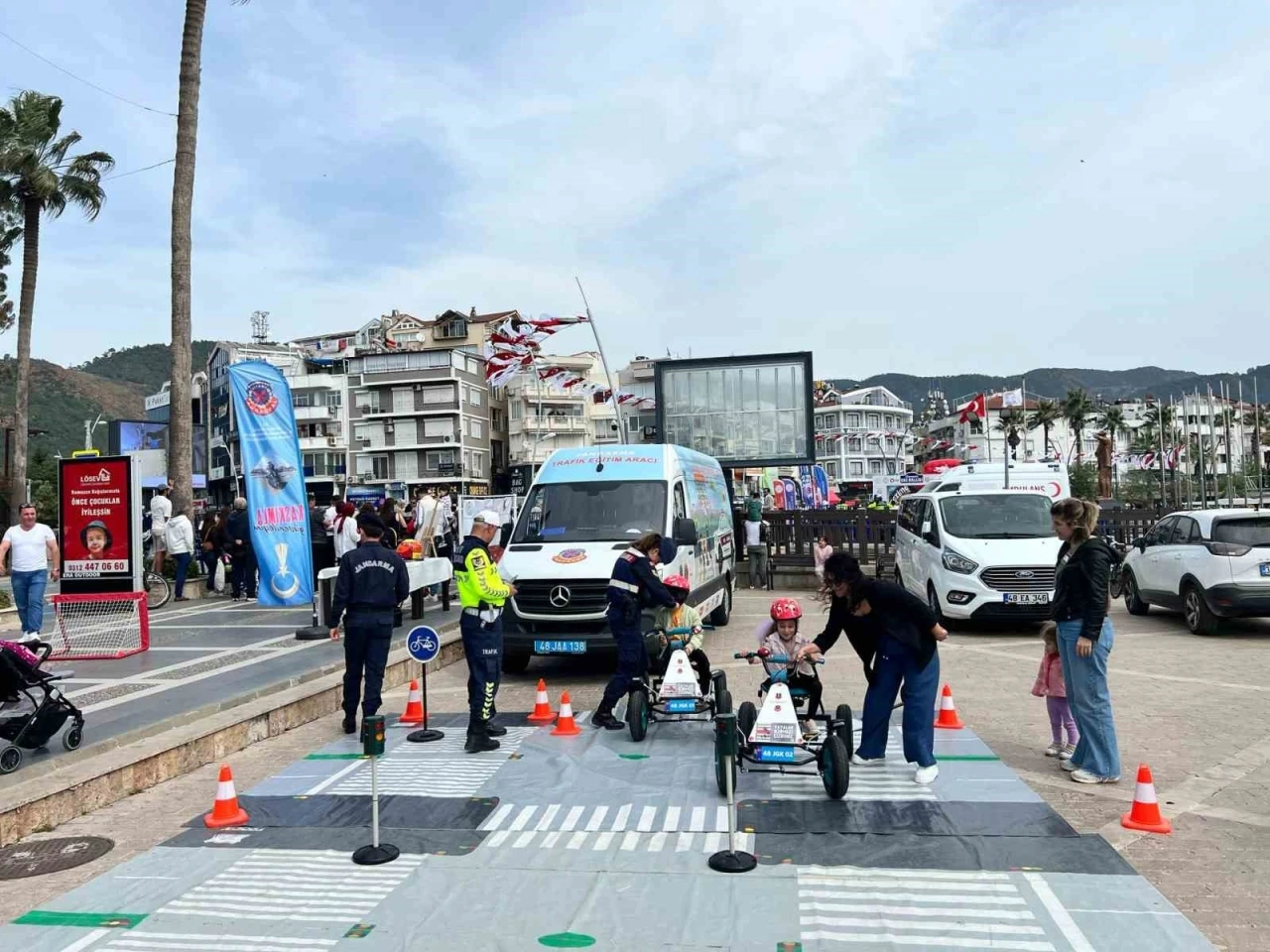 2025 Türkiye Ralli Şampiyonası’nın ilk ayağı olan ve üç gün süren Marmaris Ege Rallisi tamamlandı. Ralli süresince yollarda, parkurlarda ve meydanlarda jandarma ve emniyet ekipleri yoğun güvenlik önlemleri aldı. Bugün sona eren rallinin son gününde jandarma ekipleri trafik eğitimi verirken, aynı zamanda kadına karşı şiddete yönelik sosyal farkındalık mesajları da iletti. 14 Mart’ta başlayıp bugün sona eren Ege Rallisi’nin Marmaris etabında, özellikle kırsal mahallelerde ve ilçe merkezinde Muğla İl Jandarma Komutanlığı, Marmaris İlçe Jandarma Komutanlığı ve emniyet güçleri yoğun güvenlik önlemleri aldı. Aynı zamanda etkinliklerde sosyal farkındalık mesajları da verildi. Muğla İl Jandarma Komutanlığı’na bağlı trafik ekipleri, rallinin ödül töreninin yapıldığı Atatürk Meydanı’nın yanında bir stant kurarak çocuklara üç tekerlekli bisikletler ile güvenli sürüş ve trafik eğitimi verdi. Ayrıca, alkolün görmeye nasıl zarar verdiğini göstermek amacıyla katılımcılara özel bir gözlük taktırarak top oynattı. Marmaris Kaymakamı Nurullah Kaya da yapılan çalışmaları yakından takip ederek vatandaşların bilgilendirilmesi adına önemli bir etkinlik olduğunu vurguladı. Bunun yanı sıra jandarma ekipleri, kask kullanımının önemine dikkat çekmek için ellerinde kasklarla "Kaskınız kapalı, yolunuz açık olsun" mottosuyla bilgilendirme yaptı. "Kadına el kalkamaz" mesajı verildi