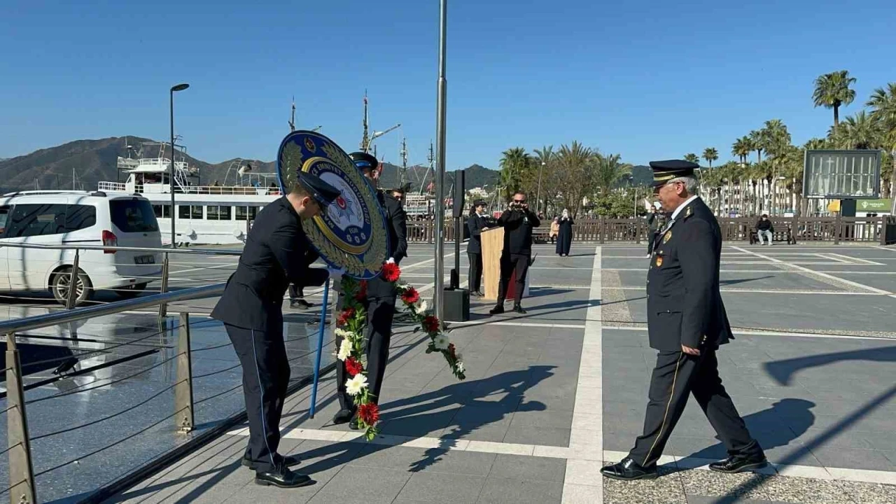 Muğla’nın Marmaris ilçesinde Türk Polis teşkilatının 180. Yıldönümü olan 10 Nisan Polis Haftası programları dahilinde Atatürk Anıtı’na çelenk sunumu yapıldı. Marmaris Atatürk Meydanı’nda düzenlenen törende Marmaris İlçe Emniyet Müdürü Selçuk Özdemir’in Atatürk Anıtı’na çelenk sunmasının ardından saygı duruşu ve İstiklal Marşı okundu. Marmaris İlçe Emniyet Müdürü Selçuk Özdemir, İlçe jandarma komutanı Binbaşı Berker Dongul, İlçe Milli Eğitim Müdürü Serap Aksel, Marmaris Milli Parklar Müdürü Mesut Gümüş, Marmaris Ticaret Odası Başkanı Mutlu Ayhan, Muhtarlar, Marmaris Muharip Gaziler Derneği üyeleri, siyasi partiler, STK’lar ilçedeki kurum ve kuruluş müdürleri ve Marmaris’te görevli polisler katılım sağladı. Şehit Polis Memuru Emrullah Balkan adına deniz polis botu da tören yerinde hazır bulunurken yarın şehidin ailesi ile birlikte botun tanıtımının yapılacağı bilgisi edinildi.