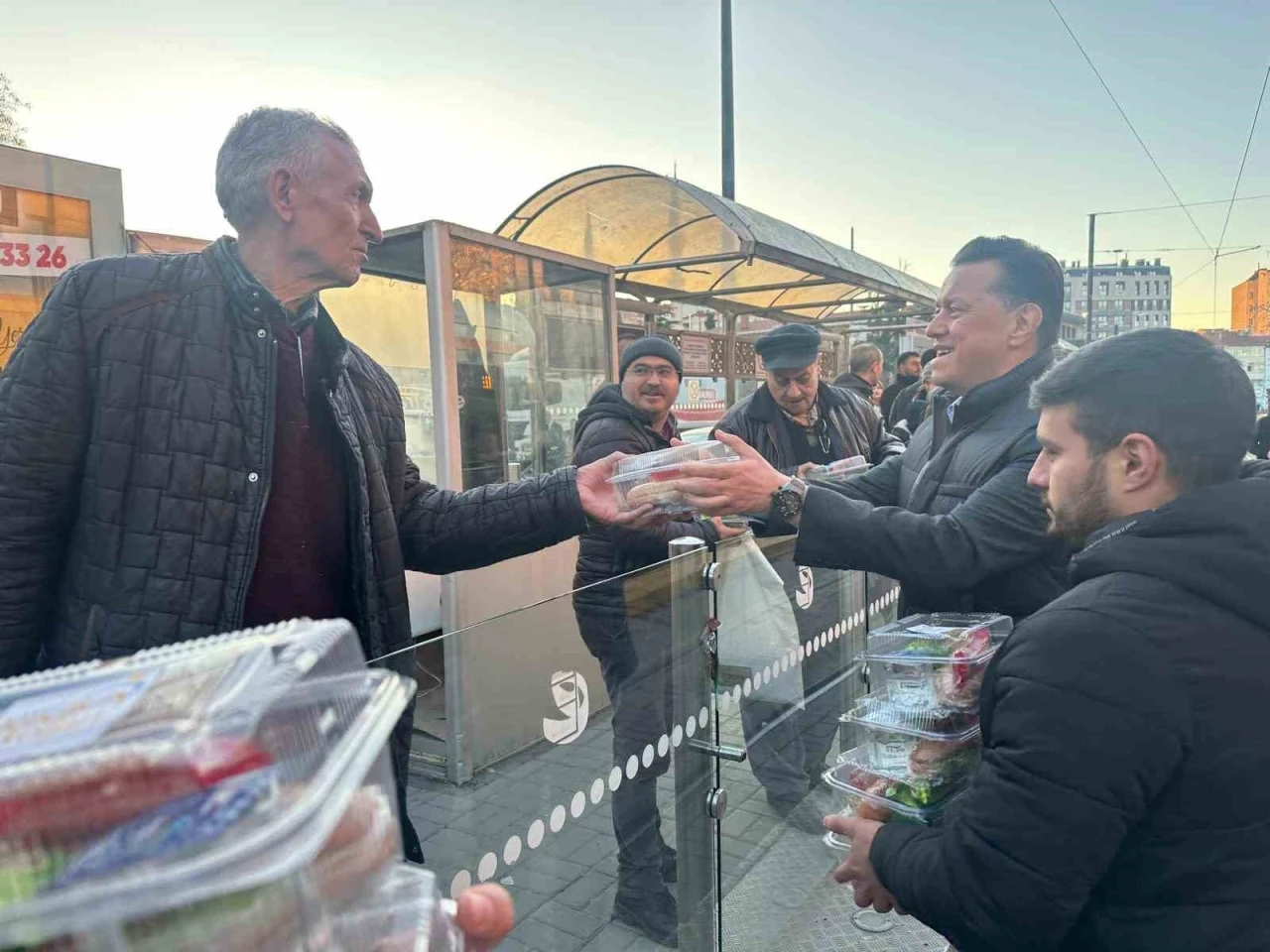 AK Parti Eskişehir Milletvekili Nebi Hatipoğlu, akşam ezanının okunmasına dakikalar kala tramvay durağında bekleyen vatandaşlara iftarlık ikram etti.