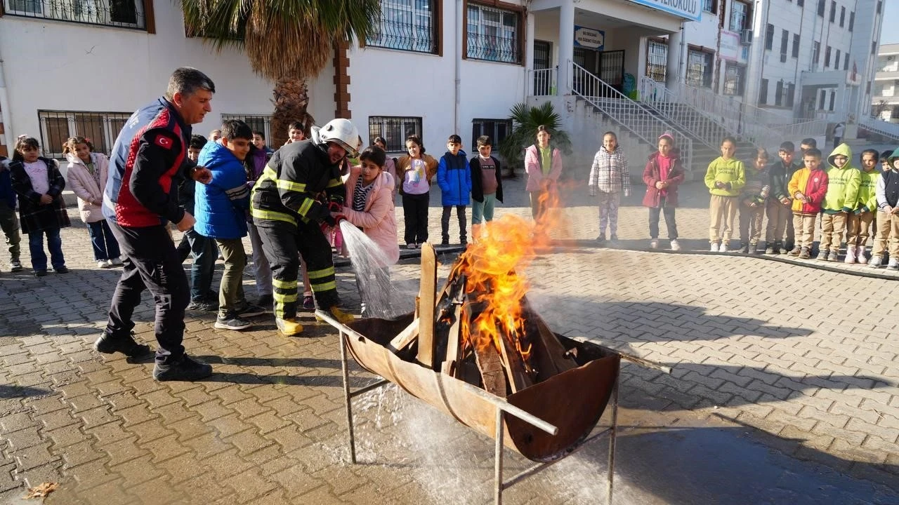 Adıyaman Belediyesi İtfaiye Müdürlüğü, çocuklara yangın bilinci kazandırmak amacıyla Menderes İlkokulu’nda yangın tatbikatı düzenledi.