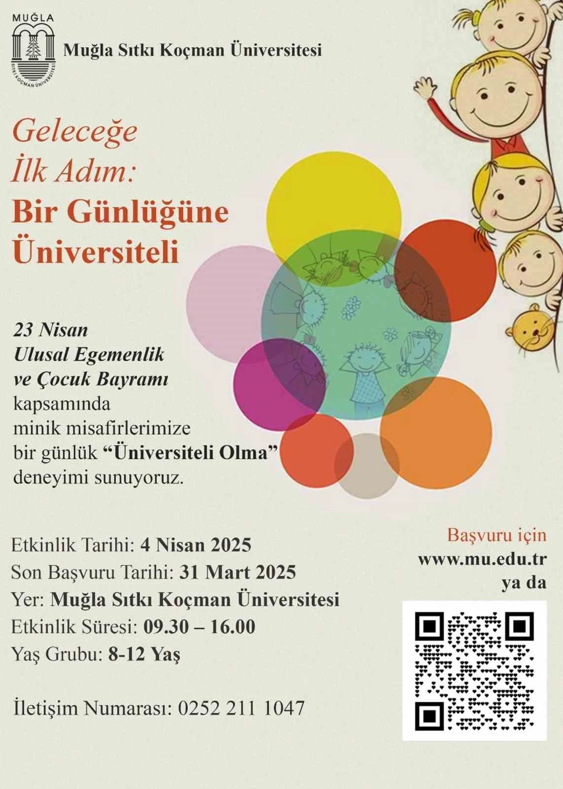 ‘Hayallerin başlangıç noktası: Muğla Sıtkı Koçman Üniversitesi’ sloganıyla ilkokul öğrencileri Muğla Sıtkı Koçman Üniversitesi’nde ağırlanacak ve unutulmaz bir üniversite deneyimi yaşatılacak. Misafir olacak minik öğrenciler, bilim, sanat ve spor atölyelerinde birer saat sürecek keyifli eğitimler alacak.
