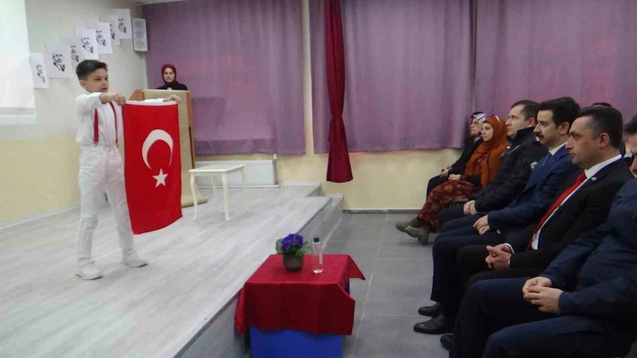 Saygı duruşu ve İstiklal Marşı’nın okunmasıyla başlayan tören, Kur’an tilaveti ile devam etti. Program kapsamında öğrencilere yönelik İstiklal Marşı’nı ezbere okuma yarışması düzenlendi. Yarışmada, Kaymakam Kalaycıoğlu’nun oğlu Mehmet Akif Kalaycıoğlu, izleyicilerden büyük beğeni alarak birinci oldu. Öğrencilerin sahnelediği gösteriler de ilgi gördü.