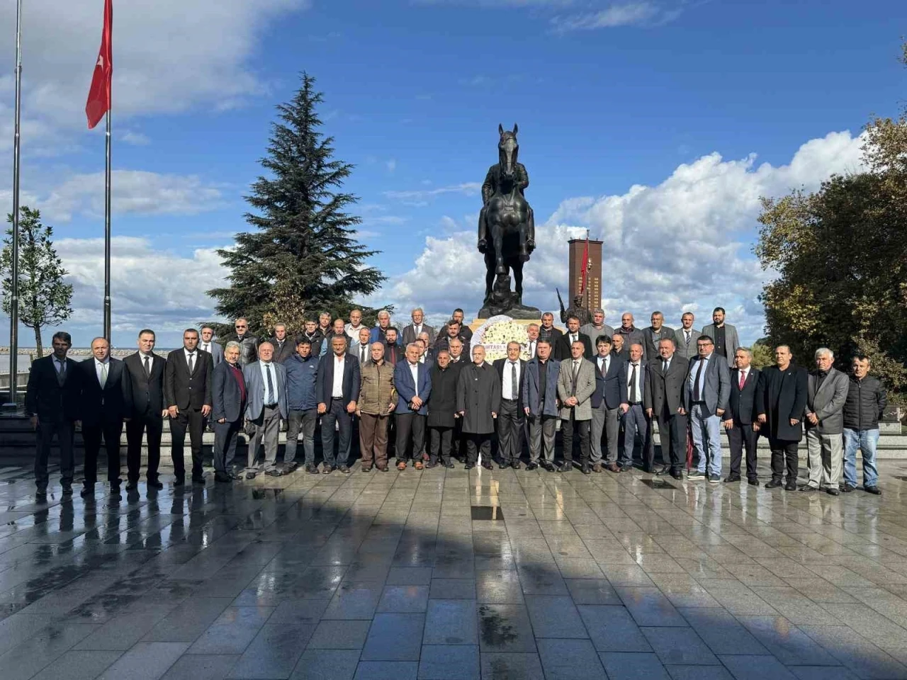Valilik önünde ki tören saygı duruşu ve istiklal marşının okunmasıyla başladı. Ardından günün anısına muhtarlar Atatürk anıtına çelenk koydu.
