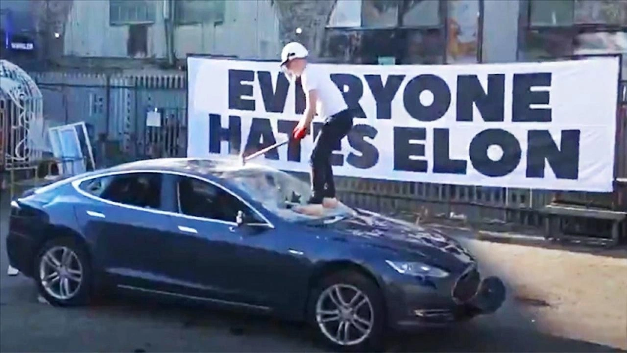 "Everyone Hates Elon (Herkes Elon'dan Nefret Ediyor)" adlı kampanya grubu, servet eşitsizliğine dikkati çekmek için hurdaya ayrılan bir Tesla araçla protesto düzenledi.