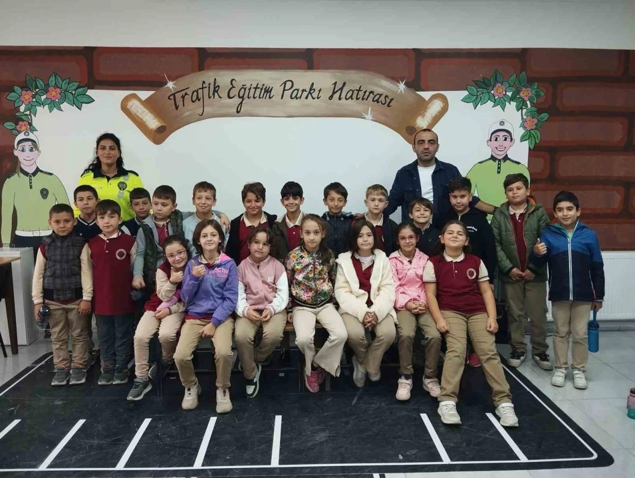 DÜZCE (İHA) – Düzce İl Emniyet Müdürlüğü ekipleri trafik dedektifleri yetiştirmeye devam ediyor. Şıralık Vatan İlkokulu’nda eğitim gören 54 öğrenci kuralları işin uzmanından öğrendi.