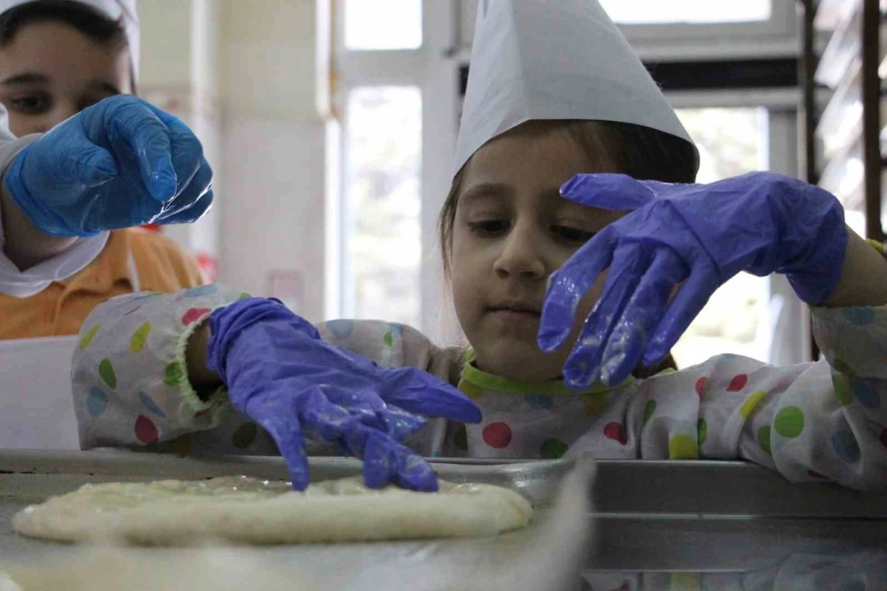 Bolu’da ilkokul öğrencileri Ramazan ayı dolayısıyla kimsesiz vatandaşlara dağıtmak için Ramazan pidesi üretti.