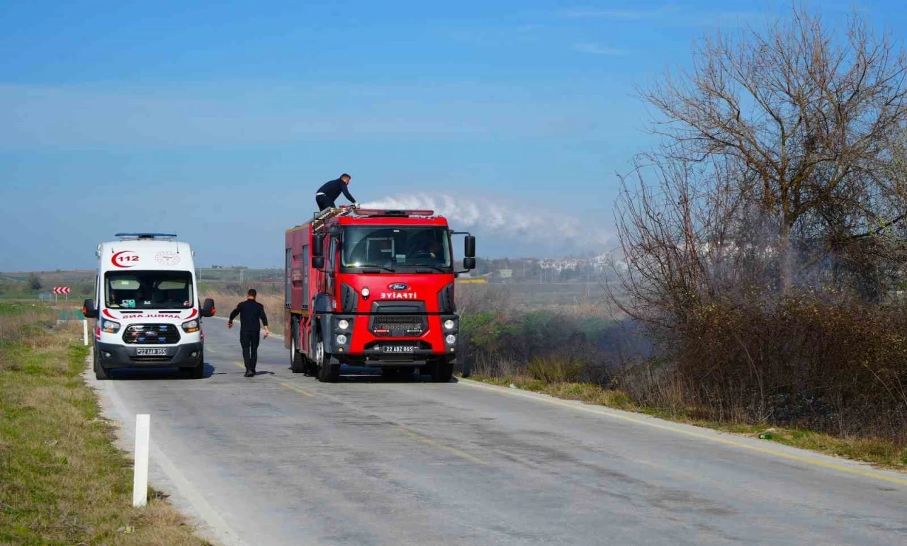 Edirne’de otluk alanda çıkan yangın, itfaiye ekiplerinin müdahalesiyle çiftlik evine sıçramadan söndürüldü.