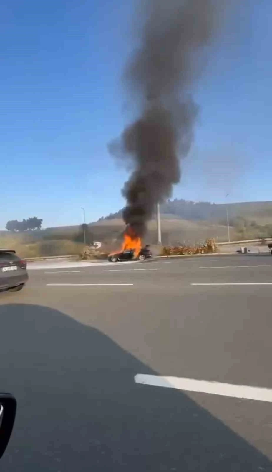 Bursa Otobanı kuzey gişelerinde bir otomobil alev alev yandı.