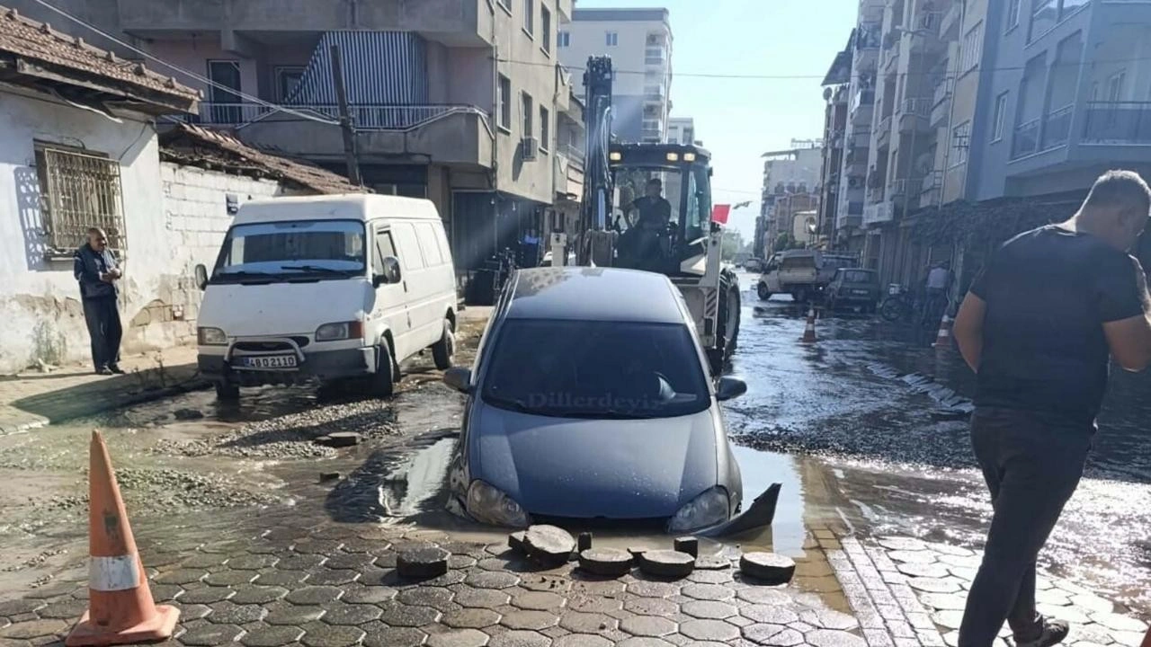 Patlamayla çıkan sular caddeyi göle çevirirken, bir otomobil ise oluşan çukura düştü. Otomobilin ön tarafı çukurda kalırken, arka kısmı havada asılı kaldı.