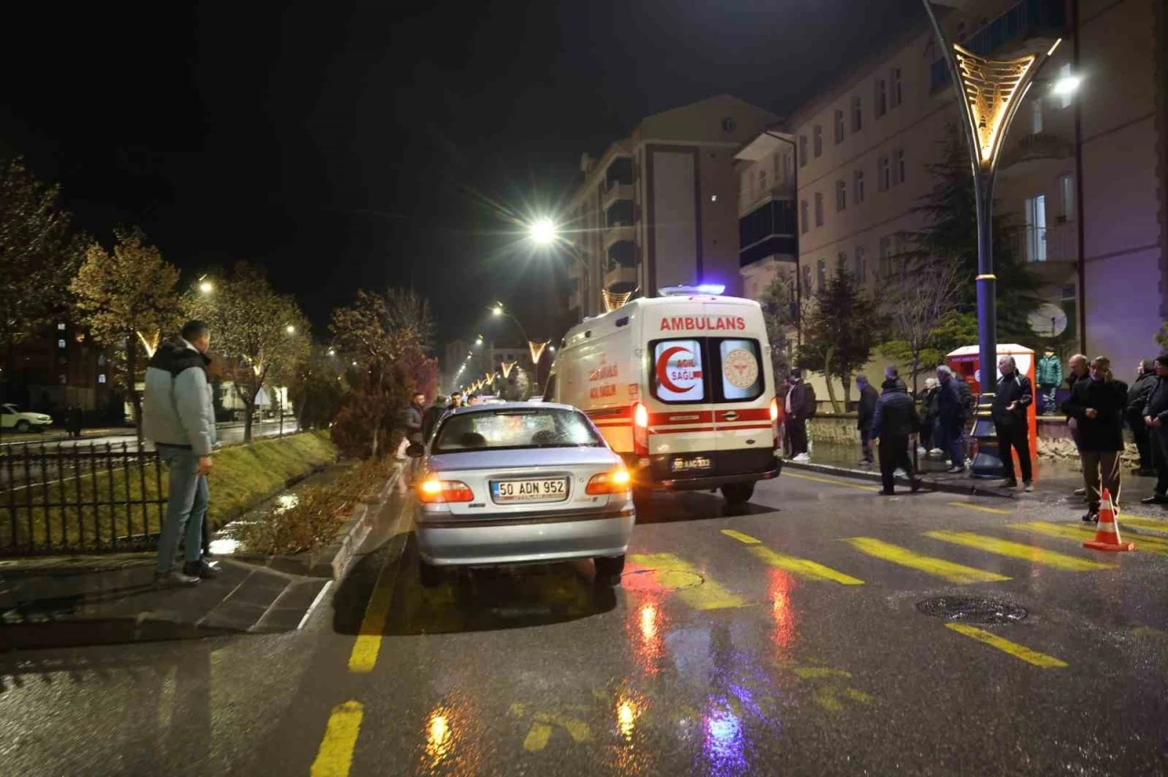 Nevşehir’de yaya geçidinden geçerken otomobilin çarptığı 2 kişi yaralandı. Kaza sonrası sürücü ile kazazedelerin yakınları arasında "küfür ettin" kavgası çıktı, o onlar kameralara yansıdı.
