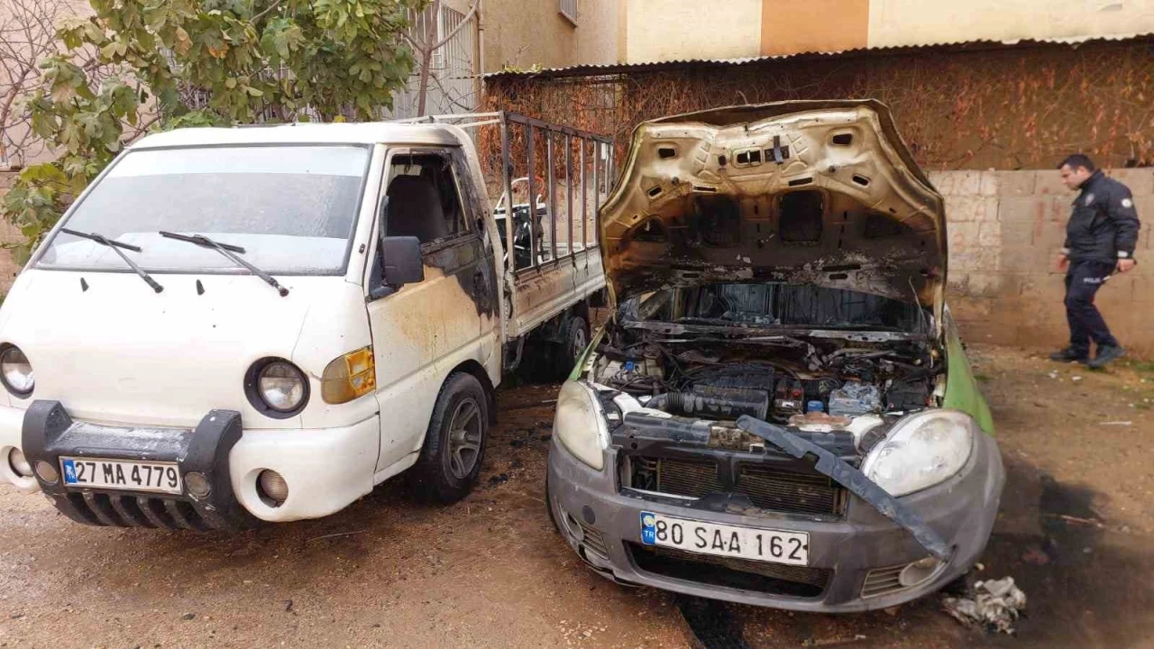Yanan otomobil kullanılamaz hale gelirken yanan aracın yanındaki kamyonette de hasar oluştu.