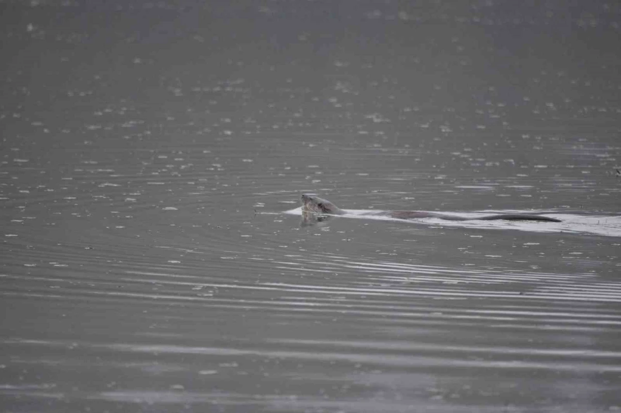 Kısa süreliğine su yüzeyine çıkan su samuru, bir süre sonra gözden kayboldu.