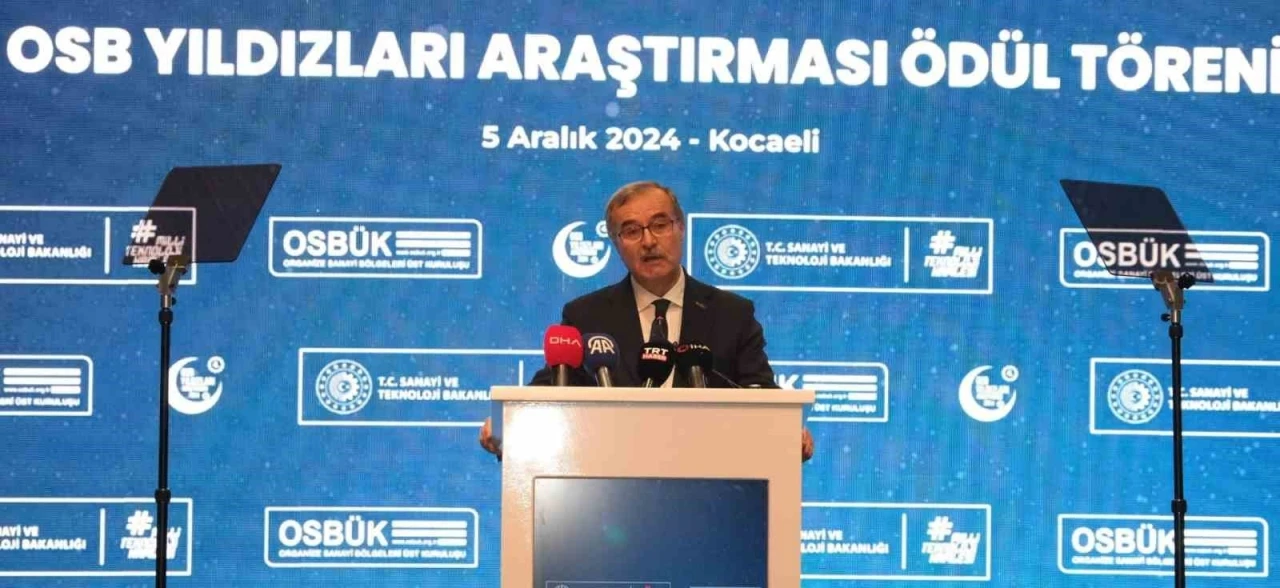 Kocaeli’de bu yıl dördüncüsü yapılan OSB Yıldızları Araştırması Ödül Töreni’nde 12 farklı kategorideki 67 firma ile 10 organize sanayi bölgesine toplam 120 plaket verildi. Ödül töreninde önemli bilgiler paylaşan OSBÜK Başkanı Memiş Kütükcü, "Organize sanayi bölgelerimiz, yılbaşından bu yana 70 binin üzerinde yeni istihdam sağlayarak, 2 milyon 700 bin kişi ile Cumhuriyet tarihinin rekorunu kırdı. OSB’lerdeki toplam kadın çalışan sayımız ise 650 binin üzerine çıktı" dedi. Gebze Bilişim Vadisi’nde Organize Sanayi Bölgeleri Üst Kuruluşu (OSBÜK) tarafından bu yıl dördüncüsü yapılan OSB Yıldızları Araştırması’nın ödül töreni düzenlendi. Törene Sanayi ve Teknoloji Bakanı Mehmet Fatih Kacır, Kocaeli Valisi İlhami Aktaş, Büyükşehir Belediye Başkanı Tahir Büyükakın, OSBÜK Başkanı Memiş Kütükcü, ödül alacak firma temsilcileri, sanayiciler ve OSB başkanlarının katılımıyla gerçekleştirildi. 4. OSB Yıldızları Araştırması Ödül Töreni’nde 12 farklı kategorideki 67 firma ile 10 organize sanayi bölgesine toplam 120 plaket takdim edildi. "Yıllık 255 milyar doların üzerinde ihracat yapan bir sanayi ülkesi haline geldik"