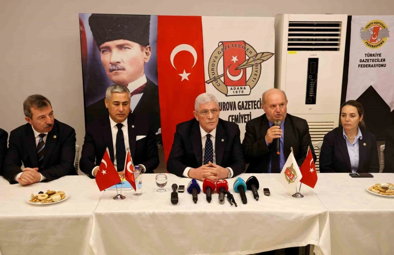Müsavat Dervişoğlu ve genel başkan yardımcıları; Çukurova Gazeteciler Cemiyeti’nde basın mensuplarıyla buluştu. Abdullah Öcalan ile görüşülmesi hakkında da açıklamalarda bulunan İYİ Parti Genel Başkanı Müsavat Dervişoğlu, “İmralı canisiyle alakalı olarak bir takım ziyaretler, gidişler gelişler söz konusu. Bu konuyla alakalı olarak da bugün şehit ailelerinin görüşlerine başvuracağım. Parlamentodan beklentilerinin ne olduğunu onlarla konuşup fikir sahibi olmaya gayret sarf edeceğim” diye konuştu. Dervişoğlu, Bolu’da meydana gelen yangın için meclise araştırma önergesi verildiğini belirterek, “Türkiye acılı günler geçiriyor. Geride bıraktığımız günlerde bir yangın felaketinden sonra kamuoyundaki tartışmaları görüyorsunuz. Yangında hayatını kaybeden bütün vatandaşlarımıza Allah’tan rahmet diliyorum. İnşallah o problemin derinlemesine araştırılarak çözümüne yönelik doğru adımlar atabiliriz. Türkiye Büyük Millet Meclisi’ndeki İYİ Parti parlamento grubu bugün, Bolu’da gerçekleşen yangın ile alakalı araştırma önergesi verdi. Önümüzdeki Salı günü bu önerge Türkiye Büyük Millet Meclisi’nde değerlendirilecek. Umuyoruz ki bunu bir siyasi mesele olarak değerlendirmezler ve araştırma komisyonunun kurulmasına iktidar milletvekilleri de katkı sağlarlar” ifadelerini kullandı.