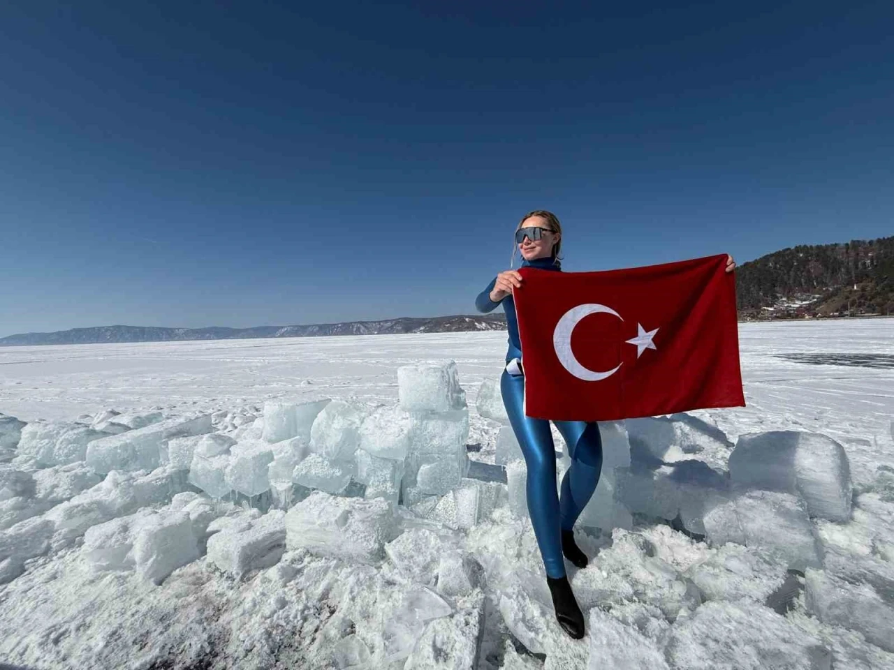 Serbest Dalış Dünya Rekortmeni ve Uluslararası çevre aktivisti Şahika Ercümen, iklim krizine ve buzulların erimesine dikkat çekmek amacıyla, Rusya’daki bin 637 metre derinliğiyle dünyanın en derin gölü olan Baykal Gölü’ne daldı. Etrafı ve üstü buzlarla kaplı olmasına rağmen su sıcaklığı 1 derecedeki göle tek nefes ile 50 metrelik başarılı dalış gerçekleştiren Şahika, Türk Bayrağı ile iklim krizi mesajı verdi.