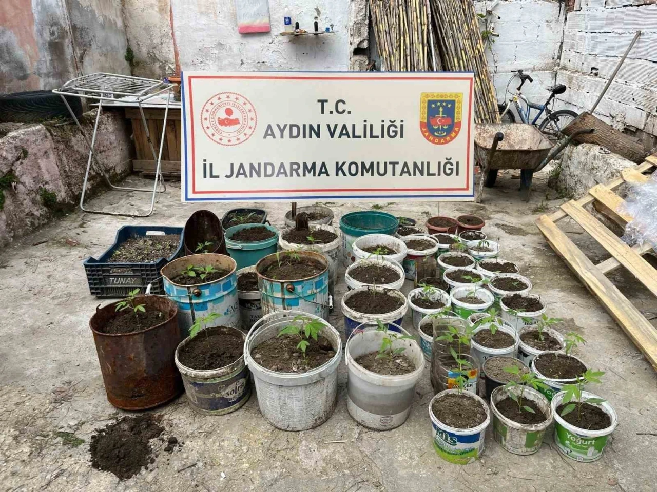 Aydın’ın Efeler ilçesinde jandarma ekiplerince bir eve yapılan baskında saksı içerisine ekilmiş halde 82 kök kenevir bitkisi ele geçirildi. Aydın İl Jandarma Komutanlığı koordinesinde uyuşturucuya yönelik yürütülen çalışmalar aralıksız sürüyor. Edinilen bilgiye göre, Efeler İlçe Jandarma Komutanlığı ekipleri, İmamköy Mahallesi’nde ikamet eden H.K. isimli şüpheli şahsın ikametinde kenevir bitkisi yetiştirdiğini tespit etti. Operasyon için harekete geçen ekipler, şahsın adresine baskın düzenledi. Şüpheli şahsın ikametinde ve eklentilerinde yapılan aramada saksı içerisine ekilmiş vaziyette 82 kök kenevir bitkisi, bir miktar metamfetamin ve kenevir tohumu, 4 adet uyuşturucu kullanma aparatı ele geçirildi. Yakalanarak gözaltına alınan şüpheli hakkında başlatılan adli süreç devam ediyor.