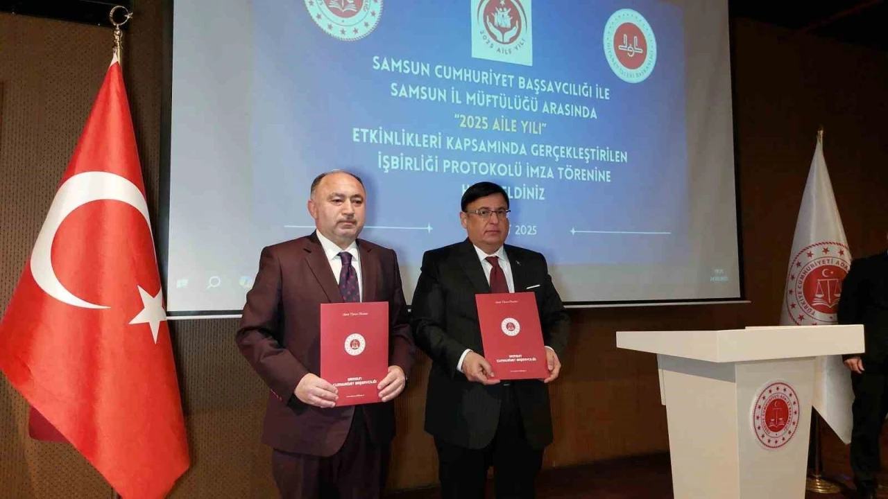 Samsun Cumhuriyet Başsavcılığı tarafından düzenlenen "Mesai Kardeşliği" adlı iftar programında, Samsun Cumhuriyet Başsavcılığı ile Samsun İl Müftülüğü arasında ailenin korunması için iş birliği protokolü imzalandı.