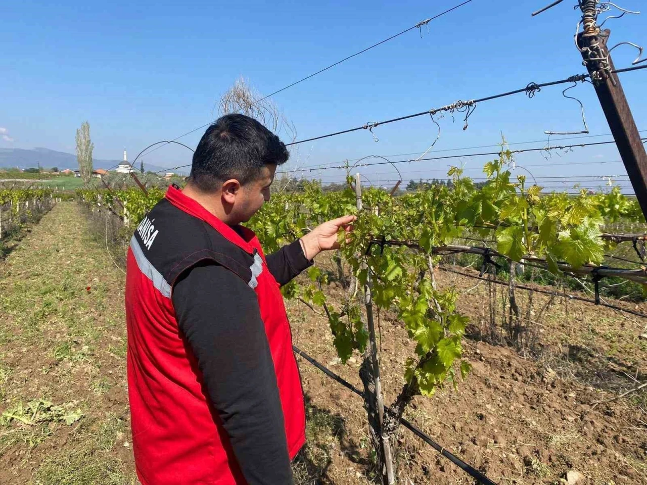 Manisa’nın Sarıgöl ilçesinde dün gece meydana gelen don olayı nedeniyle filizlenen üzüm bağları zarara uğradı. İlçe Tarım ve Orman Müdürlüğüne bağlı ekipler zarar gören bağlarda hasar tespit çalışmalarına başladı.