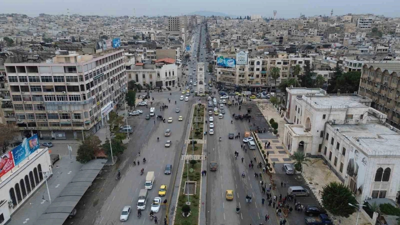Suriye’de muhalif grupların Esad rejiminden aldığı Hama’da, zafer sevinci kent meydanında yaşandı. Suriyelilerin kutlamaları dron ile görüntülendi.