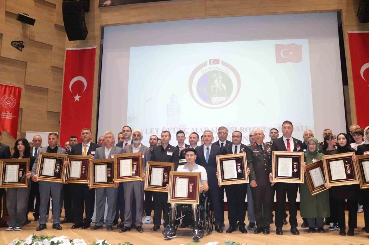 18 Mart Şehitleri Anma ve Çanakkale Zaferi’nin 110. yıl dönümü nedeniyle İzmir’de, 13’ü gazi ve 12’si şehit yakını olmak üzere 25 hak sahibine Devlet Övünç Madalyası Rozet ve Beratı verildi.