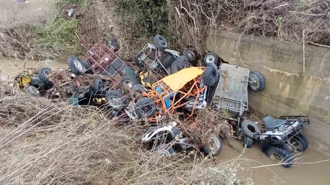 Turuncu alarmın sonrasında dün Manavgat genelinde etkili olan sağanak yağmur ve sel, ATV safari parkını da vurdu. Bucak Şıhlar Mahallesi’nde bulunan safari parktaki 120 adet ATV’den 40 tanesi sel sularına kapıldı. ATV safari tesisin sahibi ve çalışanları traktör ve kepçelerle çevredeki dereleri kontrol ederek bulabildikleri ATV’leri römorka yükleyerek tesise getiriyor.