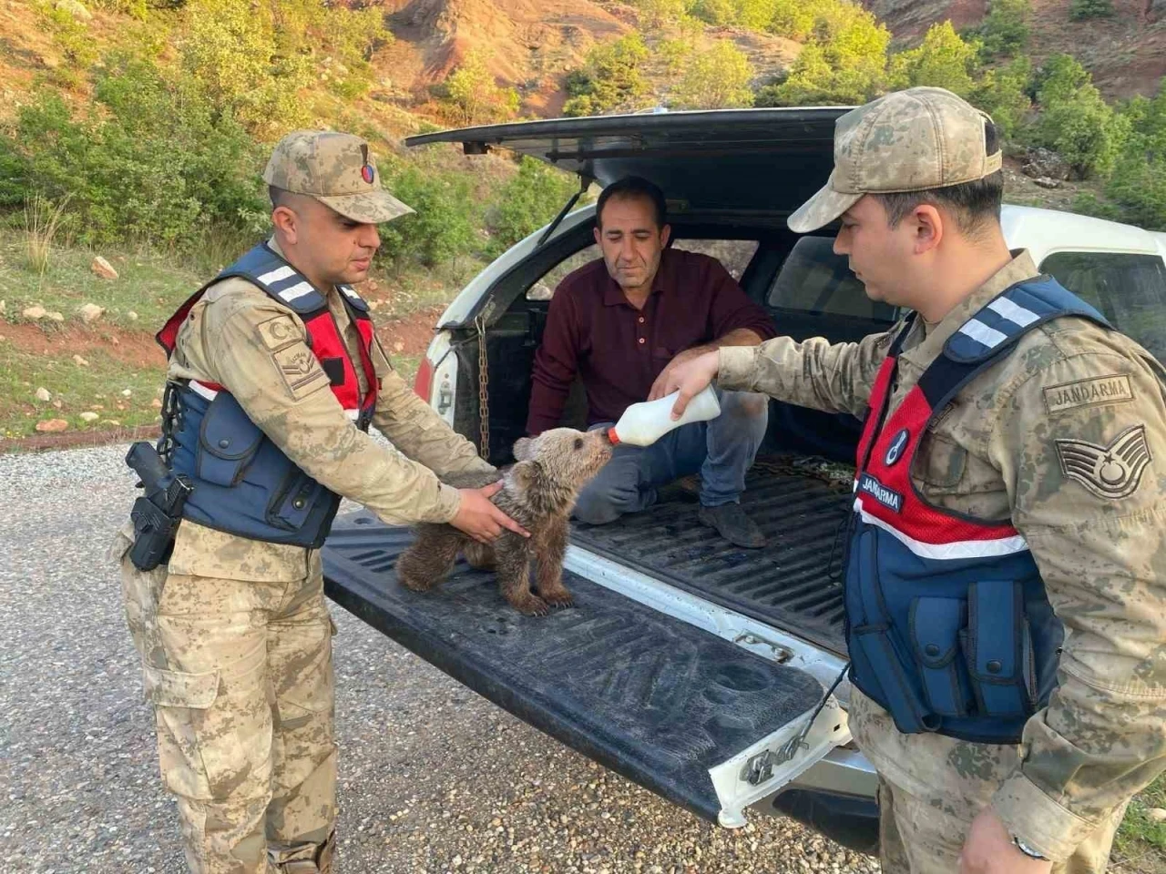 Siirt’te Jandarma tarafından bulunan yaralı Şahin koruma altına alınırken yavru ayıya süt verilip doğaya bırakıldı.