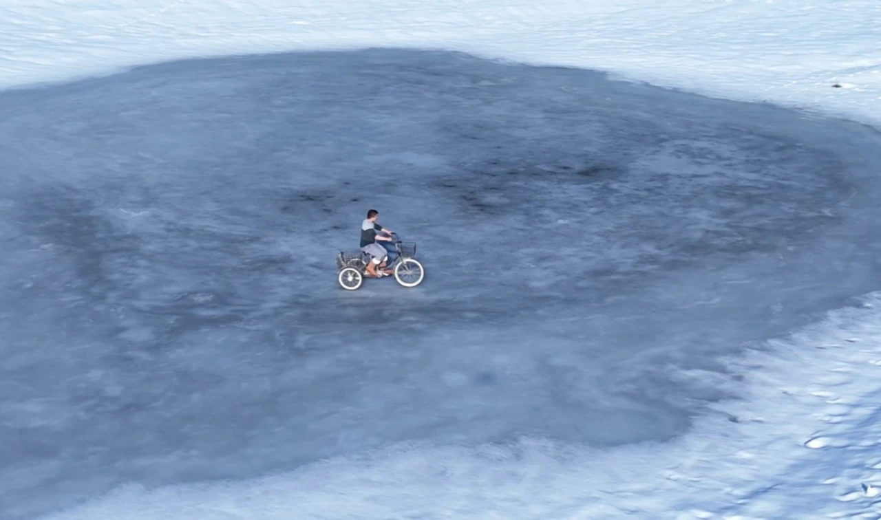 Sinop’un Dikmen ilçesi Göllü köyünde soğuk hava nedeniyle göl buz tuttu. Köy sakinlerinden Alaattin Dolma da bisikletiyle köyden çıkarak gölün yolunu tuttu. Alaattin Dolma, buz tabakasıyla kaplanan gölde bisikletiyle tur atarak keyif yaptı. Alaattin Dolma, "Gölün yüzeyi buzla kaplı. Bisikletle buraya kadar geldim. Gölün üzerinde tur attım. Güzel de oldu" dedi.