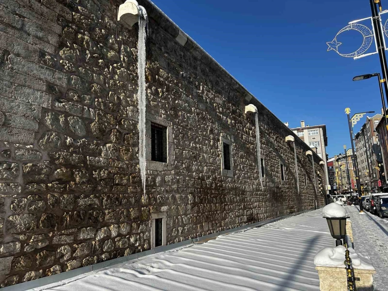 Sivas’ta iki gün etkili olan yoğun kar yağışı, yerini dondurucu soğuklara bıraktı. Türkiye’nin en soğuk illerinden biri olan Sivas’ta termometreler sabah saatlerinde eksi 10 dereceyi gösterdi. Soğukların etkili olduğu kentte dev buz sarkıtları oluştu. Tarihi Behrampaşa Hanı’nda 3 metreyi bulan dev buz sarkıtları görenleri hayrete düşürdü. Tarihi kent meydanında bulunan Buruciye Medresesi’nde de buz sarkıtlarının oluştuğu görüldü. "Sivas için normal bir soğukluk"