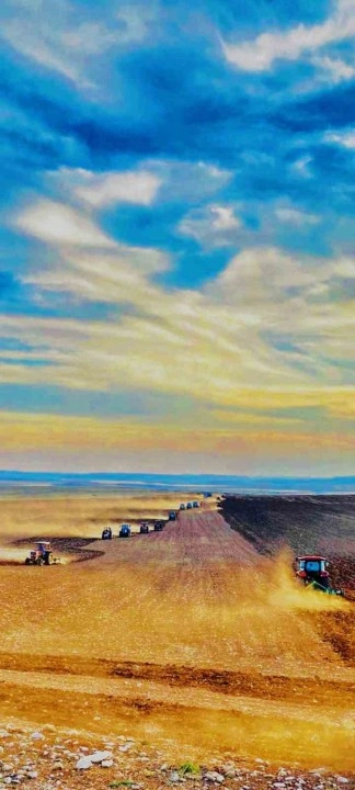 Şanlıurfa’nın Siverek ilçesinin Karadibek köyünde, sonbahar mevsimiyle ekin zamanı başladı. Köylüler, başlayan ekin zamanında asırlardır sürdürülen geleneği devam ettirerek imece usulüyle tarlalarını hep birlikte sürüyor.