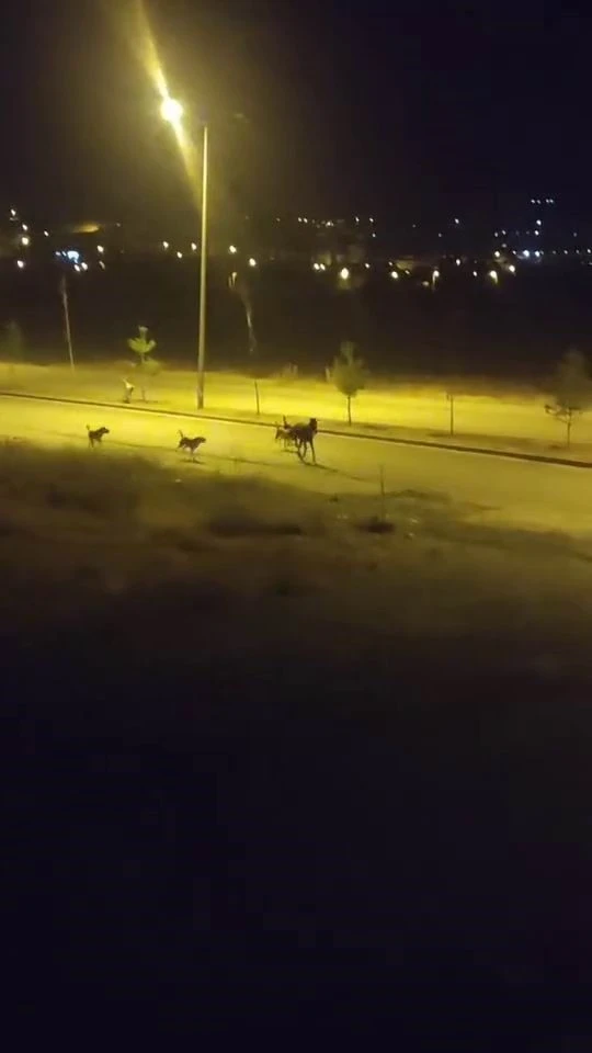 Dün gece saatlerinde Doğukent Mahallesi’nde sokak köpekleri, sahipsiz bir atı kovaladı. Uzunca bir süre yaşanan kovalamacada atı kıstıran köpekler, daha sonra kaçıştı. Atın geri dönmesinin ardından bu sefer de sokak köpekleri etrafa dağıldı. Sokak köpeklerinin kovaladığı at bir süre sonra gözden kayboldu.