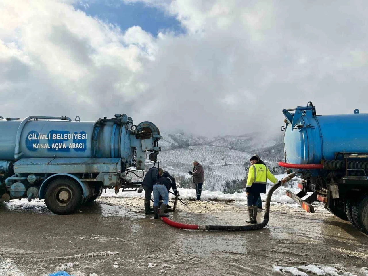 Yurdun büyük bir bölümünde etkili olan kar yağışı sonrasında belediyeler teyakkuza geçtiler. Çilimli Belediyesi kar yağışı sebebiyle oluşabilecek logar tıkanıklıkları ve su taşkınlarını önlemek için sahada çalışmalarını aralıksız sürdürüyor.