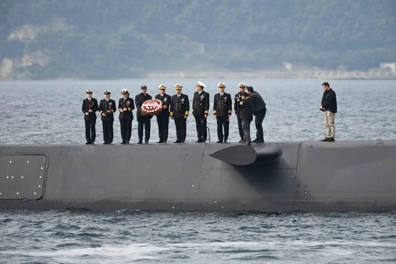 Çanakkale Boğazı’ndan geçiş yaparken 72 yıl önce Nara Burnu önlerinde İsveç şilebi ’Naboland’ ile çarpışması sonucu batan ‘TCG Dumlupınar’ denizaltısında şehit olan 81 denizci ile 4 Temmuz 1942’de Çanakkale Morto Koyu’nda batan ’Atılay’ denizaltısındaki 39 denizci için anma töreni düzenlendi.