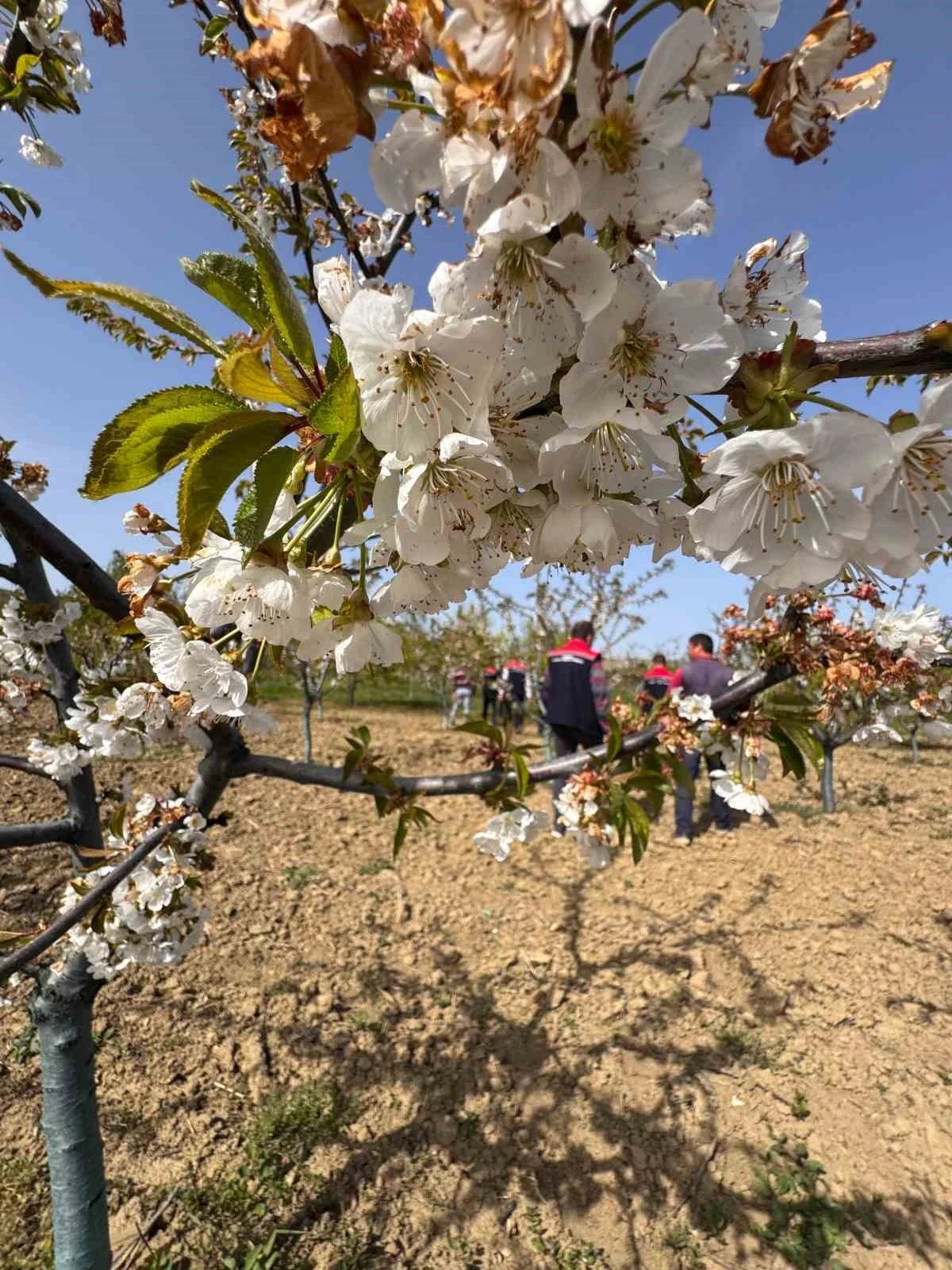 Tarımın sürdürülebilirliği açısından üreticilerin karşılaştığı risklerin takip edilmesi gerektiğini belirten İl Müdürü Aksoy, don zararıyla ilgili üreticilere hem koruyucu önlemler hem de hasar tespiti konusunda bilgi verdi. Ayrıca, ürünlerin gelişim durumu teknik personel eşliğinde incelenerek üretim sürecine dair önerilerde bulunuldu.