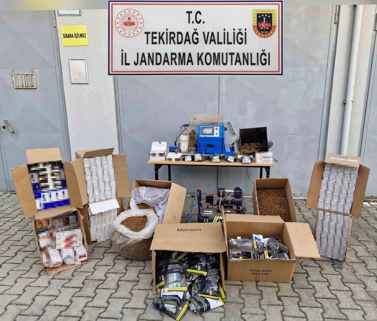 Tekirdağ İl Jandarma Komutanlığınca yapılan çalışmalar kapsamında, Kapaklı ilçesinde M.F. isimli şahsın işlettiği dükkanda ve imalathane olarak kullandığı depoda arama yapıldı. Kaçakçılık ve Organize Suçlarla Mücadele Şube Müdürlüğü ve Kapaklı İlçe Jandarma Komutanlığı ekiplerinin gerçekleştirdiği operasyonda, 100 bin 200 adet dolu ve boş makaron, 30 kilogram kıyılmış tütün, 1 adet tam otomatik makaron doldurma makinesi ve 1 adet kompresör ele geçirildi.